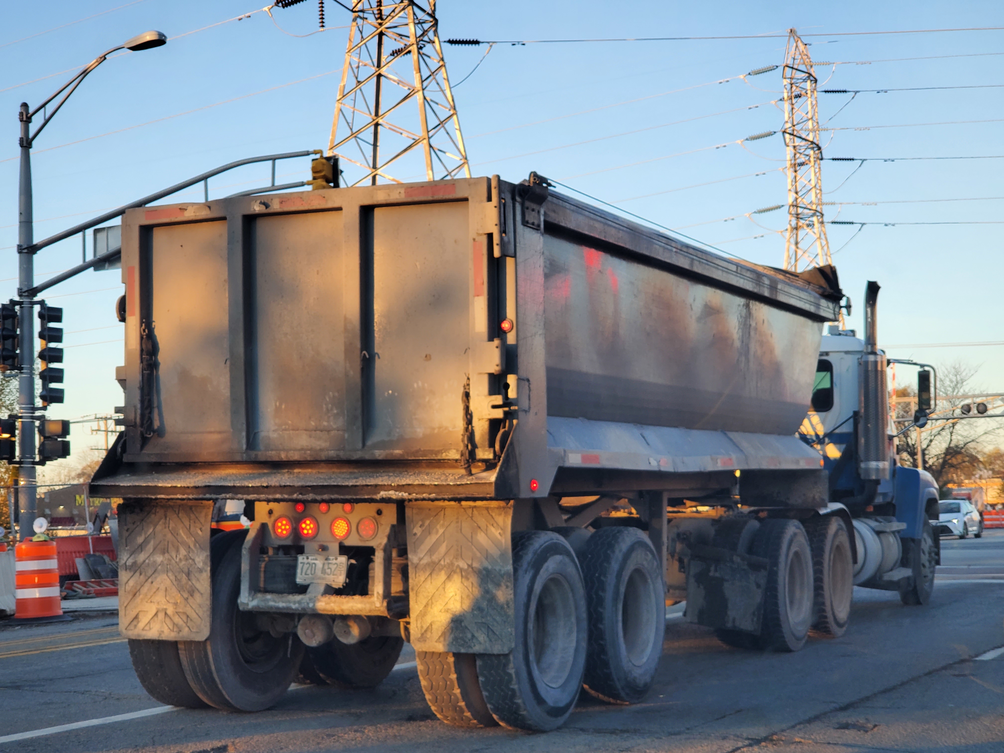 In Skokie around seven in the morning. I like all the red undertones. Dump trucks are a favorite icon.