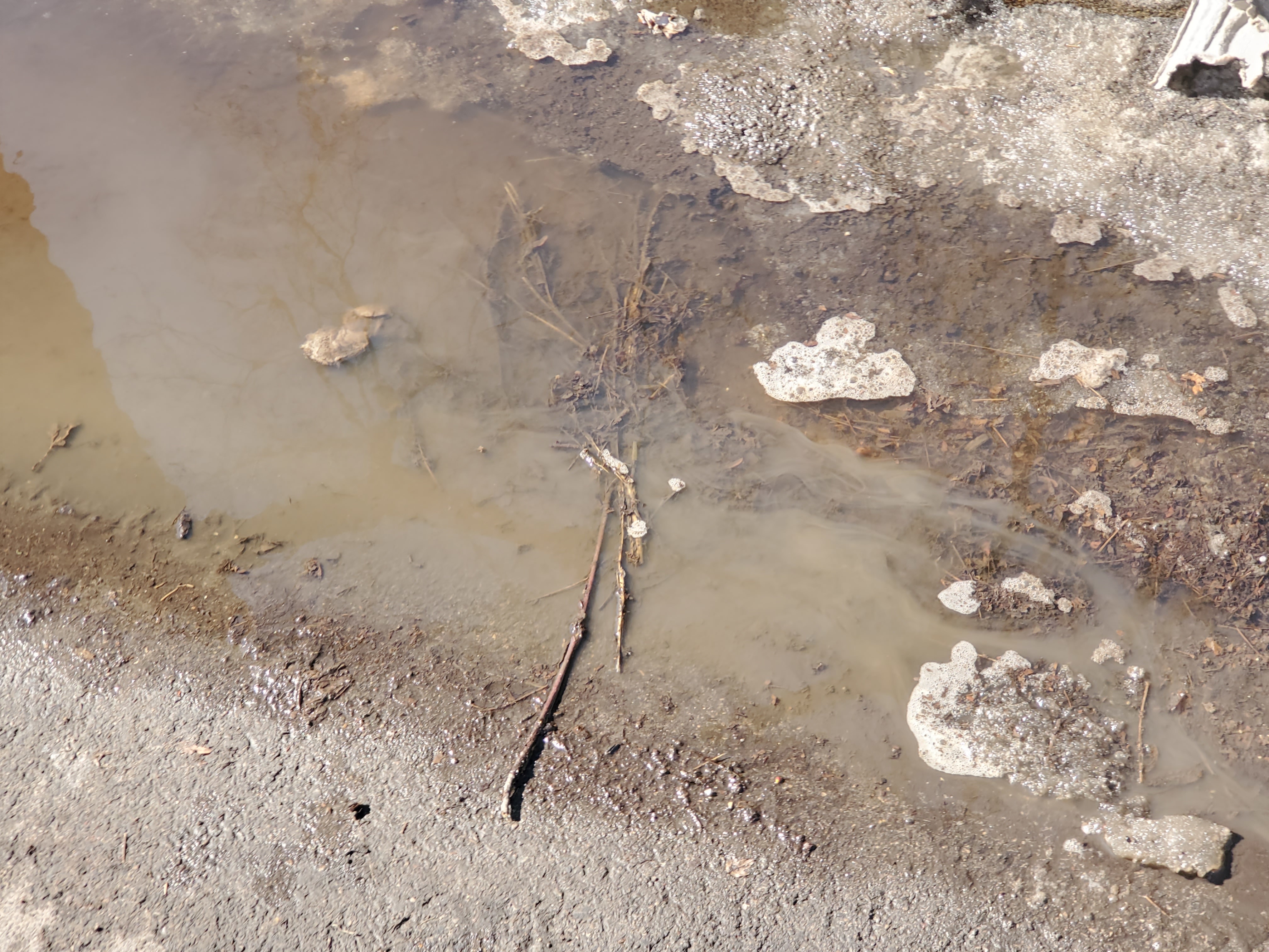 Puddles with ice and debris